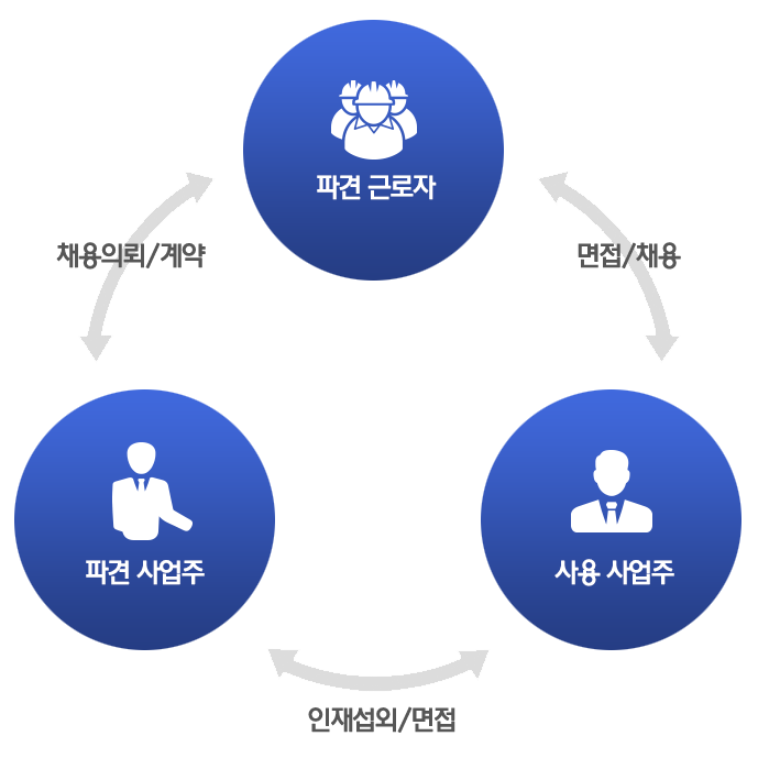 채용대행에 의하여 선발된 사원은 입사단계부터 고객사 소속직원이 되며, 채용대행 회사와는 인사 관리상 모든 관계가 종료됩니다.